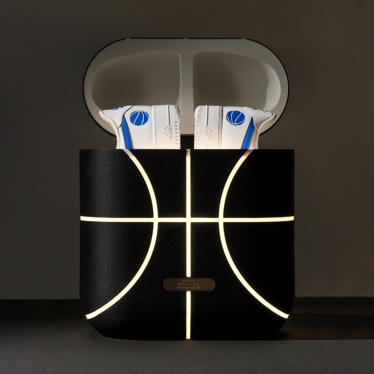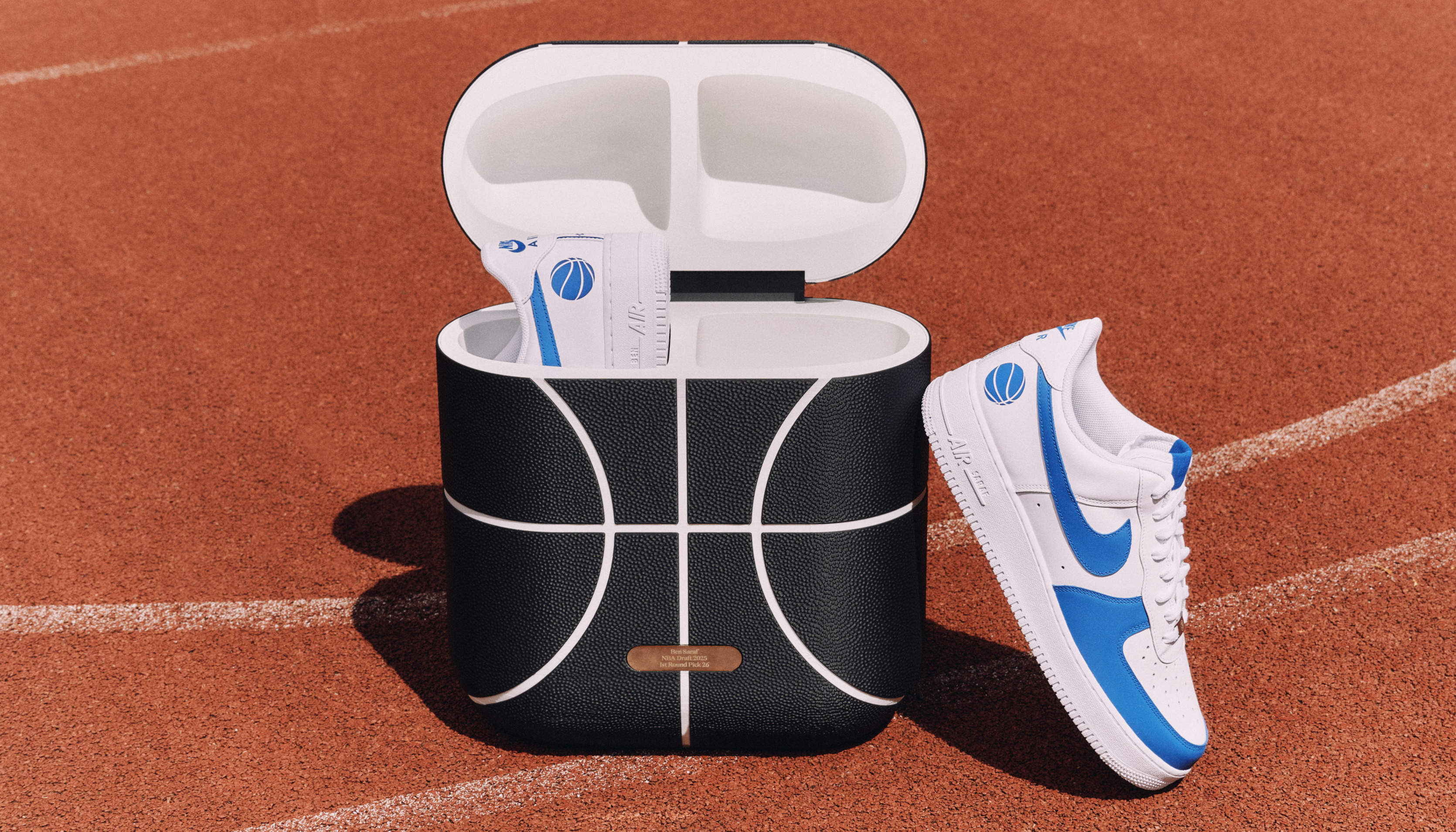 3D printed gift box and customized AF1s for basketball player Ben Saraf.